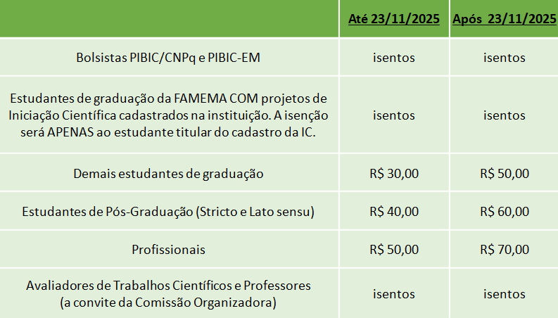 Após esta data, as inscrições poderão ser feitas somente no local do evento, mediante pagamento exclusivamente por PIX.